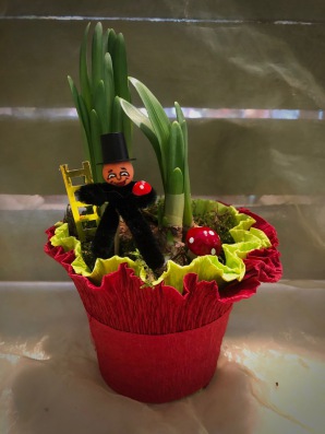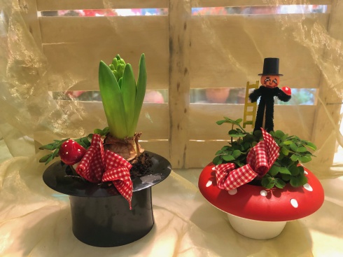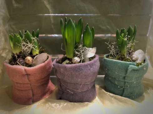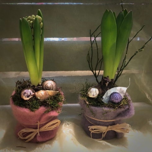 Hyazinthe mit Filzmanschette und Deko